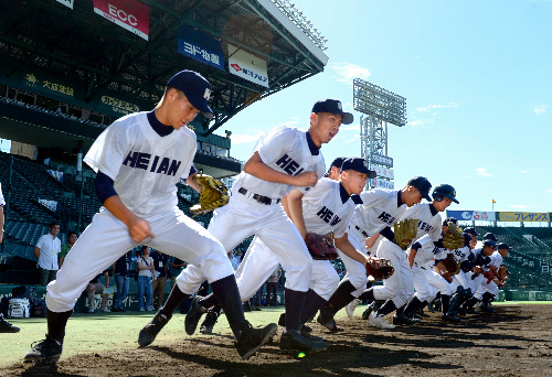 译文:参加第94届全国高中棒球选手权大会(朝日新闻社和日本高中棒球联盟主办)的49支代表队2日,开始了在甲子园的练习。上午9时,本次比赛出场次数最多的龙谷大平安队最先上场,在球场上练习击球,感受大赛前的气氛。