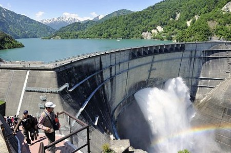 - 日本第一高水坝排水吸引游客