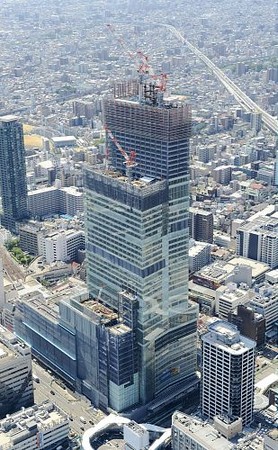 近畿日本鉄道が大阪阿部野橋駅の直上に建設中の超高層ビル「あべのハルカス」(大阪市阿倍野区)が14日、263メートルの高さとなり、西日本のビルで最も高い「りんくうゲートタワービル」(大阪府泉佐野市)の256.1メートルを抜いた。(読売新聞 6月14日16時1分配信)