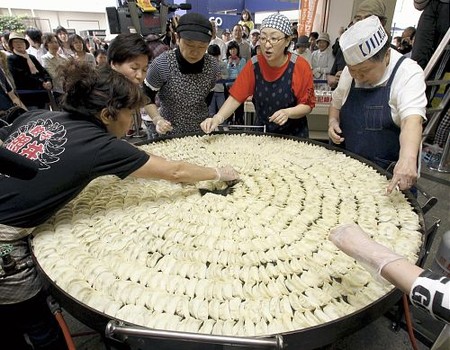 式では、新たなギネス記録を目指し、1111個、24.5キロのギョーザを焼いた。同市のギョーザは、円盤状に並べて焼くのが特徴。直径1.5メートルの鉄板で焼くこと約30分、立ち上る湯気と香りに歓声が上がった。読売新聞 6月11日(月)12時46分配信