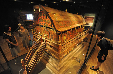 契丹は、10世紀末のモンゴル草原に強大な騎馬帝国を築いた遊牧民。約200年にわたり、北東アジアに覇をとなえた。会場には「中国10大発見」の一つといわれたトルキ山古墓(内モンゴル自治区)の彩色木棺や金の仮面など貴重な出土品が並び、入場者の好奇心をそそっていた。毎日新聞 7月12日(木)11時9分配信