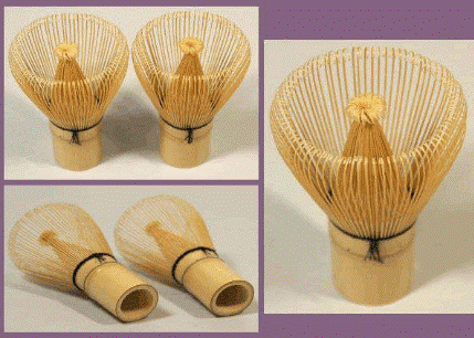 (十八) 茶筅(ちゃせん):茶刷,也称圆形竹刷。用于搅和粉茶。竹筒的一端劈成丝穗状,丝穗的数量在不同的茶道立法中各有差异。