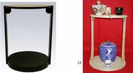 (十九) 棚(たな):用于摆饰茶道具(「棗」、「水指」、「茶碗」、「柄杓」、「蓋置」)。